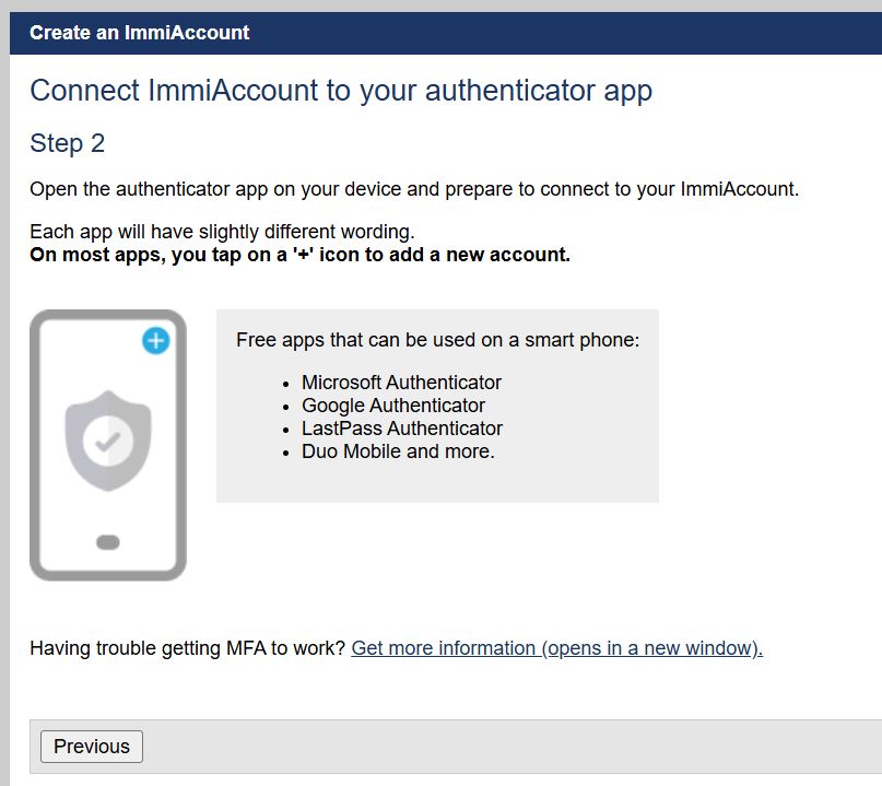 Когда вы перейдете на следующий шаг в аккаунте immi, то получите как раз тот самый QR код, который нужно отсканировать.
