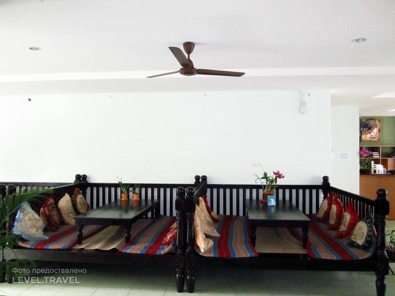 РАСПОЛОЖЕНИЕ ОТЕЛЯМаленький отельчик, находящийся в проулочке на расстоянии 100-150 метров от Джомтьена. Место очень хорошее: с одной стороны, до пляжа, тук-туков и цивилизации - рукой подать, с другой стороны, там очень тихо, в отличие от самого Джомтьена и более оживленных соек, где находится куча баров, ресторанов и т.д. И ночью там абсолютно безопасно и нестрашно ходить: вокруг такие же маленькие отельчики и дома, где живут местные. Вообще, создается ощущение, что ты находишься в какой-нибудь сонной деревеньке - на самом солнцепеке спят собаки, играют детишки, тайцы чем-то занимаются, не суетясь... Тишь да гладь, одним словом. Наше окно выходило на противоположную сторону - там нечто вроде "лесополосы", птицы поют, белки разных цветов по деревьям шастают. "Севен Элеван" близко - как выходишь на Джомтьен, сразу направо. Чуть дальше - желтый обменник с хорошим курсом.ОБСЛУЖИВАНИЕКак я поняла, в отеле работают буквально два человека: администратор Светлана и горничная-тайка. Если в отеле есть человек, говорящий по-русски, это ли не сказка для людей, не владеющих английским? Тем более, что даже его знание вам ничего не гарантирует, так как произношение у тайцев и у нас, мягко говоря, разное. Короче говоря, все вопросы мы решали в миг. Нам максимально шли навстречу во всем. Что-то подсказать, чем-то помочь, что-то выдать (тряпку, доп. полотенце и пр.). После обеда на ресепшене никого нет обычно, но есть табличка с телефоном Светланы и указан номер, где она живет. Так что ощущения "брошенности" не возникает. В отзывах ниже многие писали, что в номерах грязно. Не могу сказать, что грязно, но не операционная, это да. Но что вы хотели от малехонькой трешки? Все тайские трешки, в которых я раньше бывала, страдали тем же самым. Но по крайней мере, у нас ничего не текло, не громыхало. Просто попросили старое полотенце в качестве тряпки (якобы разлили кофе на пол) и сами помыли пол. Всё, пять минут времени! Где проблема? Нет ее! Зато к вам относятся в этом отеле по-человечески, на второй завтрак уже помнят, что вы пьете и чего вы не едите. Еще одно. Там абсолютно честная горничная. Однажды забыли закрыть сейф. Никогда такого не было, а тут... Позвонил гид, вызывал нас на экскурсию. Мы заметались, и... Короче, не пропало ни доллара, хотя в сейфе были не только крупные купюры, но и мелочь (1, 5, 10-долларовые купюры - после поездки в Камбоджу это неизбежно). Домашняя обстановка отеля приводит к тому, что все туристы, где бы ни встретились друг с другом (завтрак, лифт, ресепшен и пр.), всегда здороваются и что-то обсуждают. ЕДАЗавтраки однотипные, это правда: омлет или глазунья, иногда - лапша с куриным фаршем. Плюс два бутерброда с ветчиной, несколько кусков огурчика. Но приготовлено хорошо, порции не скудные. Мужчинам, возможно, покажется маловато, но женщине - самое оно. Можно подумать, мы дома завтракаем икрой и лобстером (кто так завтракает, в трешку и не попадет). Да, не шведский стол. Но подумайте сами, зачем в отеле с таким количеством номеров персоналу тратиться на шведский стол? Тогда и стоимость проживания резко подскочит. Это и туристам невыгодно поэтому. Просто будьте к этому готовы. Я ела по очереди омлет и глазунью и не заморачивалась. Не нравится - через дорогу кафе.ЭКСКУРСИИБрали их, как всегда, на улице. Ну, то есть в уличном агентстве, куда совершенно необязательно идти или ехать - д