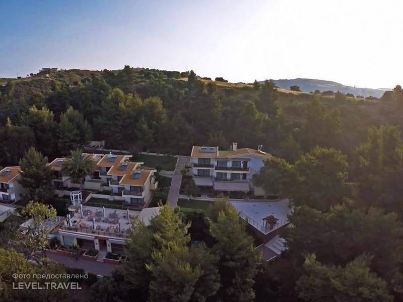 Отдыхала со своим мужем в начале июня. В мае у нас была свадьба, и для нас это было первое наше путешествие в Грецию, которое было еще и свадебным. Путевку нам подарили родители, помогали им выбирать место, конечно, наши друзья. Сам отель как раз друзья и посоветовали, так как ранее отдыхали в нем. Когда нас отправляли в путь, сказали только, что поедите в один из самых романтических отелей, с пометкой только для взрослых.От аэропорта до отеля доехали достаточно быстро, примерно за 1 час 40 минут на групповом трансфере (отель находится в 100 км от отеля). Но все же, советуем заказывать индивидуальный трансфер, доедете за час и с комфортом, на обратном пути мы так и сделали. Отель находится на полуострове Халикидики, Кассандра в местечке Неа Скиони. Невероятно красивое место, сосновые леса вокруг, эвкалиптовые рощи, воздух чистейший. Сам отель находится на возвышенности, над поселком Неа Скиони, ах какие виды там открываются на Эгейское море, все как на ладони. Сразу хочу отметить отельный бассейн с панорамным видом на море.Сам отель не такой большой, но очень уютный, есть одно центральное здание и несколько отдельных корпусов, как домики. Мы жили в одном из них, в номере Suite Deluxe, на втором этаже. Шикарный номер, спасибо, конечно, нашим родителям. У нас была отдельная спальня с двуспальной кроватью, и отдельная гостиная, и целых три балкона. Вид на море невозможно описать, на рассвете, на закате, днем, постоянно разные оттенки неба и моря. Номера оформлены в приятных спокойных тонах, светло бежевых. У нас в номере было 2 телевизора, холодильник, фен в ванной, и стояла кофемашина (я кофеманка, и для меня это был приятный сюрприз). Также, вероятно персонал отеля предупредили, что у нас медовый месяц, потому что в номере у нас стояли вино, фрукты и цветы – такое внимание от отеля очень приятно. Да и персонал отеля отзывчивый и улыбчивый, русскоговорящий. Хотим поблагодарить за теплый прием Фотини на ресепшне, и управляющего отеля господина Левтериса.В отеле тихо и спокойно, никакого шума и детей. Полное уединение.Хочу также отметить ресторан и шеф повара, нам все понравилось, было очень вкусно. Система питания у нас была – завтракужин. Ну, завтраки обычные в принципе ничего особенного - яйца, тосты, мюсли, джемы. А вот ужины очень понравились, особенно стифадо – мы долго пытались запомнить название. Это кролик, с маленькими луковицами приготовленный в духовке.По вечерам, после романтической встречи заката у бассейна (как вы поняли, это мое любимое место было), мы спускались в деревушку Неа Скиони, которая можно сказать у подножия нашего отеля. Маленькая рыбацкая традиционная деревушка Греции. Очень много ресторанчиков с морепродуктами, сувенирные магазинчики, и вокруг оливковые рощи.Также если вы будете отдыхать в отеле, недалеко (примерно 7 км, на такси обходится около 6 евро), есть оздоровительная гидролечебница, достаточно известная, как нам сказали еще с очень древних времен, с очень красивым названием - Агия Параскеви. Здесь геотермальные источники и современный СПА комплекс. Горячие минеральные воды, температура примерно 36-38 градусов. Массаж нам обошелся 50 евро, а стоимость бассейнов 6. Правда, присутствует своеобразный запах сероводородных ванн, так что будьте готовы к специфическому аромату. Но оно того стоит, здесь полный релакс и омоложение. И там 
