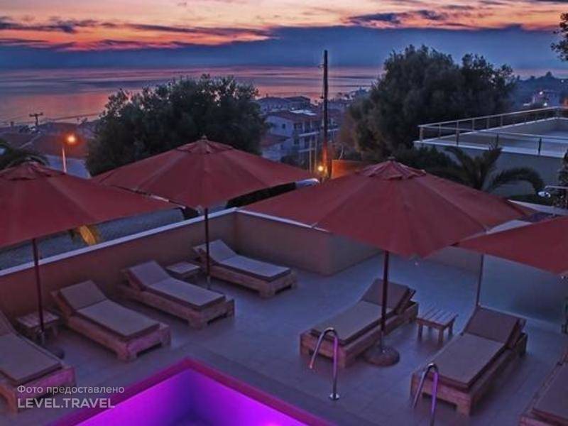 Отель находиться недалеко от деревни Нео Скиони. В поселке есть 2 супермаркета, кафе, таверны,Отель расположен на горе, территория маленькая, чистая и зеленая. Вечером будет скучно.В отеле всего 20 номеров, толкотни и суеты нет. Номера просторные, современный дизайн, вид на море, только если это не 13и 11 номера ( тогда это вид на бар).До пляжа могут отвезти на машине с 9 ч. до 6ч. или 15 минут пешком с горы в гору и метров 300 по шоссе ( что не очень приятно, т.к тротуара нет).Пляж песок, но вход в море примерно 1,5 м крупная и мелкая галька, дальше песок. Кабинок для переодевания и душа нет, туалет можно найти в баре.Но самый большой провал - это питание , оно не соответствует 5-ти звездному отелю. На завтрак мало разнообразия. Первую неделю не было яичницы и бекона, потом они появились, исчез йогурт. На ужин нет шведского стола, по меню на выбор из 3-х блюд (рыба или мясо или веганское ). Мне это напомнило питание в самолете, еще одной паре - комплексные обеды в заводской столовке. И приготовлено не очень вкусно и подавалось все это уже еле теплым.Я езжу уже 21 год и мне есть с чем сравнивать, в моей жизни были и 3-х звездные отели. У этого отеля 5-ти звездам соответствуют только номера, территории нет, до пляжа надо идти и ПИТАНИЕ на мой взгляд просто беда .