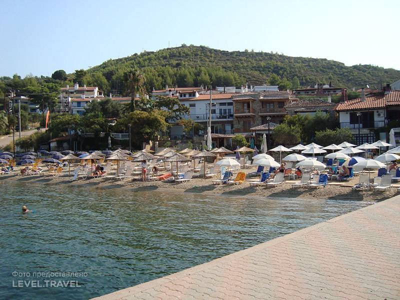 Поселок Лутра (Loutra) расположен практически на самой южной оконечности мыса Кассандра на полуострове Халкидики в Греции, соответственно, от аэропорта в Салониках, куда прилетают туристы, далековато. Правда, представители принимающего туроператора Ambotis holidays встретили оперативно, быстренько рассадили по микроавтобусам и повезли развозить туристов по Кассандре. Где-то через час пути меня одну пересадили в легковую машину и еще через час уже на машине доставили до Лутры. Так что за работу туроператора ставлю плюс.Ambotis holiday владеет в Лутре несколькими зданиями, скажем так, отелей, хотя по факту отель там только один - Xenios Loutra beach, расположен сразу на въезде в поселок, куда меня и привезли для регистрации. На ресепшене только глянули на паспорт, быстро выдали ключи от номера на вилле Xenios Karnagio Apartments (там и бронировала номер) и дали карту местности с указанием направления, куда идти. Собственно, все... До апартаментов добираться с чемоданами надо самостоятельно, спасибо водителю машины Леониду, который меня привез в Лутру, он, посмотрев на меня в разгар жаркого дня, предложил подвезти до виллы. Имейте в виду, делать это водители Ambotisа не обязаны !Правда, как оказалось впоследствии до виллы Karnagio идти совсем недалеко, минут 6 не очень быстрым шагом и по относительно ровной дороге, вот только в разгар дня тени там почти нет, если кому-то важно, имейте в виду. Другие виллы, входящие в сеть Xenios в Лутре, - это виллы Solena A и B, а также Studios Elissavet расположены еще дальше по дороге, причем от Karnagio дорога идет довольно круто вверх, по моим ощущениям местами где-то под углом менее 45 градусов, так что смутно представляю, как там спускаться людям пожилого возраста или с маленькими детьми.Ближе всего к Xenios Loutra beach расположена вилла Arsinoi studios - практически напротив на берегу моря, но там и стоимость номеров, соответственно, выше.О поселке Лутра - глухомань,буквально три с половиной улицы, все так или иначе ведут к спа-центру на горе, вокруг которого, собственно, и возник посёлок. Там термальные источники, услугами я не пользовалась, но по отзывам неплохо лечат болезни суставов, многие именно за этим и приезжают в Лутру. Только для пожилых людей стоит иметь в виду, что сам спа-центр расположен на крутой горе и все-таки жилье подбирать с этим расчетом, ну или арендовать машину.Возвращаясь к самой Лутре - помимо посещения указанного спа-центра развлечений собственно никаких, кроме посещения местных таверен и баров на пляже. Магазин (гордо именуемый супермаркет, хотя по факту крошечный магазинчик продовольственных и хозтоваров) один, можно купить кое-какие необходимые продукты - свежий хлеб, крупы, макароны, бакалея, молочные продукты, сыры и колбасы. Мяса и рыбы свежих нет, только заморозка в небогатом ассортименте. Соответственно, кто планирует сам готовить, думайте, где будете покупать продукты. Мой вывод, что для семей особенно с детьми единственный вариант - арендовать машину и ездить за покупками в близлежащие городки с настоящими супермаркетами. Правда, регулярно днем по поселку проезжают машины со свежими овощами и фруктами в большом ассортименте - картошка, помидоры, кабачки, арбузы, дыни, черешня, абрикосы, нектарины. Также ездит одна машина, с которой продают свежую рыбу и креветок, я, честно говоря, ее ни разу так и не уловила, может он не доезжал до Karnagio или мы как-то не