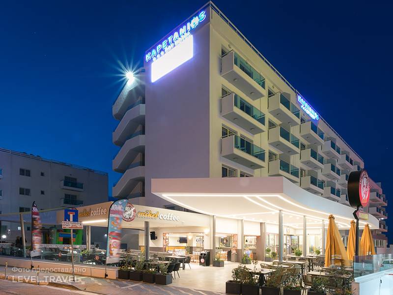Отдыхали в отеле с мужем с 23.06 по 07.07 от ТО Библио Глобус, ровно с задержкой на год, тур был приобретен еще в конце 20-го года по РБ. Приехали около 10 утра, заселили в номер где-то после 13 часов. К ресепшн примыкает кафетерий, где можно позавтракать. Отель после реновации, все выглядит вполне достойно. На ресепшн после 15 часов работает русскоязычный сотрудник, другая сотрудница также вполне неплохо говорит по-русски, представитель от БГ Илья также часто присутствует в отеле. Тут же приобрели по 2 евро необходимые переходники, но в магазинах можно купить дешевле. Также за 7 евро можно взять пляжное полотенце на весь срок пребывания и ежедневно менять у сотрудников ресепшн, сумма обратно не возвращается. Полотенца хорошие, приятного голубого цвета. В отеле для гостей функционирует 2 лифта, проблем с ними не наблюдалось.Пожелания по номеру стандарт , озвученные на данном сайте, были выполнены – верхний этаж и вид на бассейн. В рядовые ночи вполне тихо, спали с открытым балконом. Пару ночей пришлось закрыть балкон из-за цикады, поют они каждую ночь, но тут звук был просто невыносимым, совсем рядом. Несколько раз пришлось закрыться и включить кондиционер из-за небольшого частного сектора, который находится сразу за территорией, сдают его на пару ночей компаниям киприотов, гульба там порой продолжается в течение ночи.Сам номер вполне нормального размера, две соединенные широкие кровати. В номере небольшой холодильник, электронный кодовый сейф, фен в ящике стола, чайник. Вай-фай у нас работал очень прилично, с кондиционером также проблем не было, есть русские каналы ТВ. В шкафу всего 2 полки, что явно маловато, на 3-й стоит сейф. Ванная комната с полноценной ванной, совсем небольшая, но нам, высокорослым, вполне хватало места. В ванной мыло, гели для душа, шампуни, нам пополнили лишь однажды. Балкончик небольшой, есть столик и 2 кресла, еще один комплект стоит в номере. Сушилки на балконе нет, мы повесили свою бельевую веревку. Уборка в нашем номере была утром, приходили с пляжа в районе 13 часов, уже убрано.На этажах возле лифта стоит гладильная доска, мы иногда забирали ее в номер на небольшое время и пользовались своим дорожным утюгом. Кто-то из соседей по этажу приноровился складывать на эту доску грязную посуду и упаковки из Макдональдс, порой это все стояло до 9-10 утра, а горничных найти было невозможно, причем все это красовалось прямо у лифта. Стала принципиально складывать эту доску, после чего это безобразие прекратилось. Халява с шоу фонтанов в этом сезоне закончилась, организаторы закрыли зрелище полотнами, но какие-то фрагменты можно увидеть, со своего балкона наблюдали часть шоу-извержение вулкана.Стоянка автомобилей на территории отеля вполне большая, в первые дни места были забиты машинами с местными номерами, но есть дополнительная большая стоянка за территорией отеля, насколько понимаю, она также принадлежит Капетаниос.До ближайшего пляжа около 8 минут средним шагом, обратно в небольшую горку минут 10. До Лидл также идти порядка 10 минут, неплохой ассортимент и вполне приличные фрукты. Понравился Метро в Паралимни.Отель находится в начале основной центральной улицы Протараса, рядом есть хорошие рестораны. На этой улице понравились Hippocampus и Vangelis. Чуть выше параллельно проходит трасса, на этой улице в районе отеля отличные рестораны Nameles