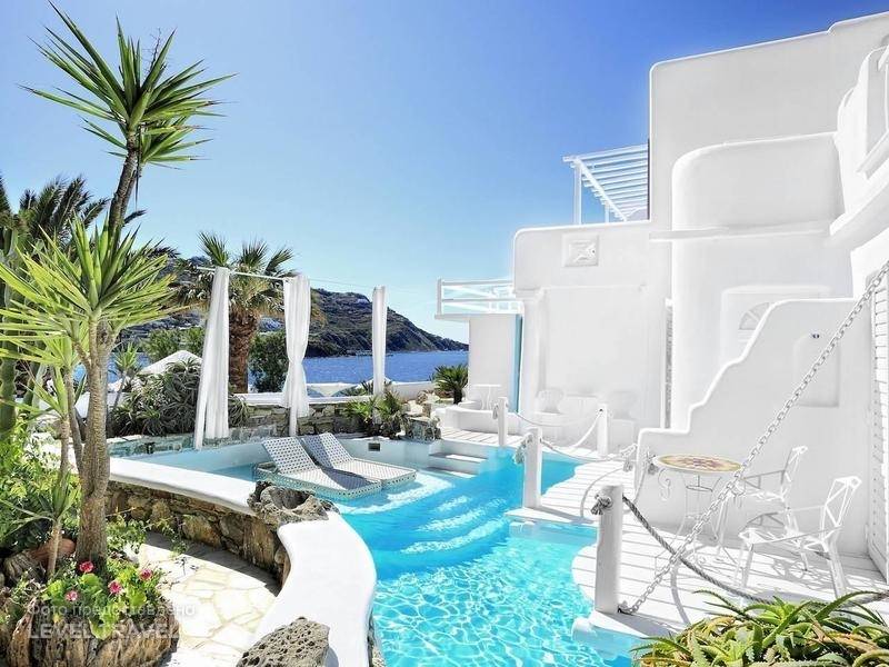 Отель расположен на берегу прекрасного залива Орнос, всего в 3 километрах от столицы острова Миконос и в 5 километрах от аэропорта. Это место обладает неповторимым очарованием и предлагает удивительные виды на море и окружающую природу.