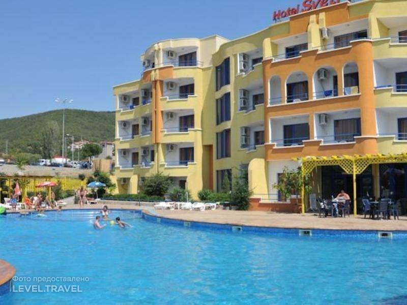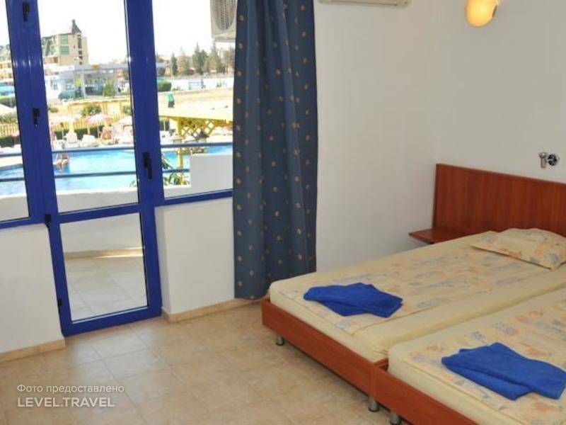 Очень понравился отель! Мы купили путевку из Перми за 26 т.р. На человека - 11 ночей с завтраками. Это очень -очень дёшево. Визу не покупали, у нас был уже шенген.Болгария - спокойный отдых, летят в основном либо с детьми либо кто уже в возрасте. Не тусовочный отдых. Мы летали парой, нам понравилось - полный релакс и очень комфортный климат - для тех, кто не любит сильную жару.Номер был стандарт, понравился шкаф в номере - все влезло. Есть Кондиционер, сейфа и чайника нет (нам не понадобились). Вид был на бассейн.Бассейн довольно большой по сравнению с другими отелями. Чистят его каждый день. Лежаков всегда хватало.Удобно, что напротив есть кафе - когда лень было идти куда-то, то ходили в него. Хорошее кафе - недорого. В остальных было немного подороже. 1 евро = 1.9 лев.Шопский салат 4.6 Лев (в других кафе 5-6,5 Лев)Свиной сач 22 Лев. (В "бистро 41" был 28 лев, но там вкуснее и больше мяса, но меньше овощей).Форель 10 левВино бокал 2-3 лев. Вино домашнее в Болгарии понравилось.Самое большое Удивление (приятное) у меня вызвал климат! Там не жарко! Нет сильной жары как в Греции или Испании или Черногории. Но при этом и море комфортное и купаться нормально. Вот это наверно мне больше всего понравилось в Болгарии (ну и цены конечно тоже ).На море не было водорослей. Медуз видели только 2 штуки (может нам повезло конечно, т.к. говорят бывает и то и другое). Море лучше , чем я ожидала. Даже прозрачное если нет сильных волн. Один лежак 8 лев, зонт 10 лев. На двоих в общем 26. Мы один раз брали лежак и взяли его около зеленой изгороди (сзади растения какие/то были). В общем нас там замечали мошки , а на следующий день все жутко чесалось от их укусов. Но это было только в этом конкретном месте. Потом лежали на песке ближе к морю - ни разу мошек не было.До моря надо прогуляться, но это вполне сносно, т.к. не сильно жарко. Вечерами иногда даже прохладно было - лучше брать кофту и джинсы с собой.Недалёко большой гипемаркет Меркурий - ходили туда почти что каждый день. Там много всего, деньги тоже там меняли.Недалёко от отеля на кольце пекарня, кусок пиццы 2,5 Лёва. Пицца в принципе норм. А вот софийская Баница там не очень - 2 раза брала, в ней можно сказать не было творога, одно тесто.Ездили на экскурсию Болгарский вечер 57 лев стоит у Анекса. В уличных тур. агенствах дешевле - думаю, можно взять у них. Еще ездили в Созополь и Равадиново (вроде 87 лев на человека). Не скажу что прям в восторге, в старом городе Несебра (ездили на автобусе сами) нам понравилось гораздо больше , чем в старом городе Созополя. А Равадиново - замок, который построил местный болгарин. Ну странное место )) Дорохо-бохато, но безвкусно )))) Пофоткаться можно конечно.В Несебр обязательно стоит съездить на кольце у отеля на остановке сели в автобус и минут за 30 доехали до Несебра, очень красивый вид на море. Обедали там в ресторане с шикарным видом на море. Цены подороже, поели на двоих: Семга , суп, салат и 2 бокала вина - 50 лев.Хороший отдых! Комфортный климат, дешево и красиво!