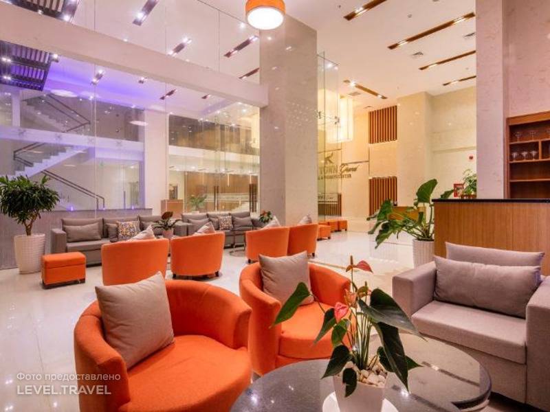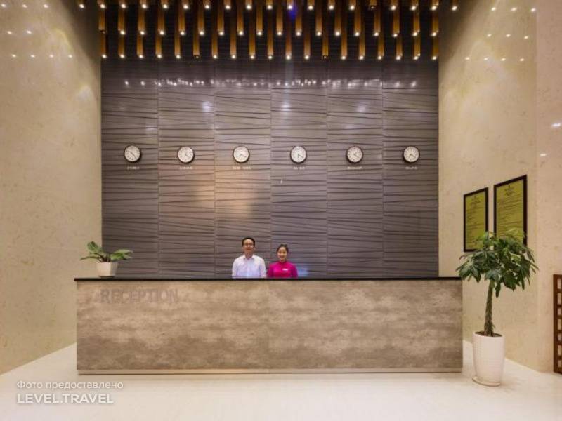 Лично я в шоке от это азиатской темы с прозрачными душевыми. Ну кто блин ещё кроме них в мире будет делать прозрачные двери и стены в ванной комнате, прямо напротив кровати. Извините, это крик души) А вот история с этим отелем) Поехали мы с молодым человеком в марте во Вьетнам, забронировали номер повышенной комфортности с двумя балконами и площадью полноценной квартиры. Сразу начну с минусов. Их было 2 и очень жирных. Во-первых, заселили спустя 5 часов после прилета. К слову сказать, наш рейс перенесли на 12 часов раньше, чем изначально было озвучено. Это уже был косяк туроператора, ведь заселение во Вьетнаме почти во всех отелях с 14 часов, а прилетели мы в 7 утра. Во-вторых, это собственно, душевая. На фото отеля показано, что перегородка прозрачная , однако, в реальности все оказалось намного смешнее. Именно в нашем номере, если лежать на кровати, при этом спустив жалюзи, через щель между дверью и краем жалюзи, четко виден унитаз. Очень романтично.. Ну да ладно, и это мы тоже смогли решить В принципе, все остальное казалось мелкими недочетами, однако, отель все равно очень уютный и комфортный. Видно, что дорогой. Мебель новая и качественная, в номерах и душ и ванная на любой вкус. Каждый день, после уборки приносят комплимент в виде фруктов. Честно говоря, после этих фруктов, кушать свои уже даже не хотелось) Для кого-то будет минусом тот факт, что отель находится НЕ в ЦЕНТРЕ! Нужно ездить либо на автобусе, либо на такси минут 10-15. Один раз мы ходили пешком. Лично меня этот факт совершенно не смутил, но в минусах я его укажу, потому что понимаю, что для многих удаленность от центра является приоритетом. В отеле есть очень качественный массажный салон. Сделали массаж горячими камнями, самый дорогой у них из списка, что в принципе оказалось недорого для московского ценника , даже с учетом курса, - остались очень довольны. Девушки на ресепшене плохо говорят по английски, но если долго мучиться, как говориться..что-нибудь получится. На пляж мы ходили немного подальше, к саду камней. Там мне пляж нравился больше. Он шире и живописней. В отеле очень много китайцев. Они постоянно то заселяются, то выселяются, лифтом пользоваться не умеют, толкаются и кричат. Кафешки ближайшие в минутах 5-10 хотьбы по главной улице. Там же мы покупали экскурсии через Ананас Тур. Самая лучшая - Далат. Взяли на 1 день и очень пожалели, что не на 2 и не все успели посмотреть. Также обязательно сходите в парк развлечений VinPearl. Только обязательно с самого утра, иначе потом на аттракционах будут очереди. Что касается завтраков, они в отеле замечательные. Утром даже делают суп Фо. Однако, я не любительница супов с утра, поэтому ела яичницу, вайли, фрукты, пила кофе. Все очень даже на высоте, кроме китайцев, которые очень сильно орут за завтраком и мешают спокойно разговаривать. Из важных плюсов - Вай фай в номерах, постоянная уборка, смена белья и полотенец. Словом, отличный сервис на уровне четверки.