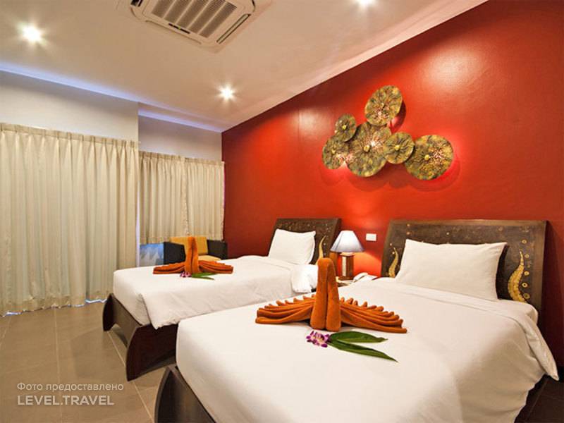 Выбирала отель исключительно по месту нахождения. 3* в Тае - ожидала хуже. Отельчик не большой, расположен на достаточно оживленной улице. До пляжа 15 мин шагом не торопливым. В пожеланиях указала балкон и этаж. потому пришлось немного подождать. А так заселяют быстро. Очень приветливый персонал. При заселении попросят 500 Батт залог, сохраняйте квитанцию обязательно.Номер просторный, все необходимое есть - кондиционер, холодильник, чайник!, фен, 2 бут воды и чай/кофе кладут каждый день, сейф бесплатный. Розетки не требуют переходников.Рядом есть круглосуточный магазин, аптека, кафе, бары, близко до центра города, до рынка - 15 мин пешком, банкоматы и обменники на каждом углу. Кстати совет - не менять деньги в аэропорту - не выгодный курс, но при заселении залог только в баттах- можно рядом у входа в отель поменять. Полотенца - 2 для отеля + 2 для бассейна, меняют каждый день. очень хорошо. Уборка в номере конечно не европейская, но вполне не плохо.На крыше бассейн - не большой, но уютный и работает до поздна. можно после пляжа и там поплескаться.Завтрак скромный, но голодными не останетесь, 3* все же. всегда есть горячее национальной кухни, немного фруктов и овощей, сосиски, яичница, хлопья. Европейской кухни нет, ну так в Тайланде же. Для детей с едой проблема была бы. И немного шумно в номере- машины, люди. Но для взрослых - хорошо.Еще рядом есть аренда байков - очень рекомендую. 200 батт день. отдых сразу становится более интересным!В целом, об отеле только хорошие впечатления. Рекомендую и буду рада поехать туда еще.