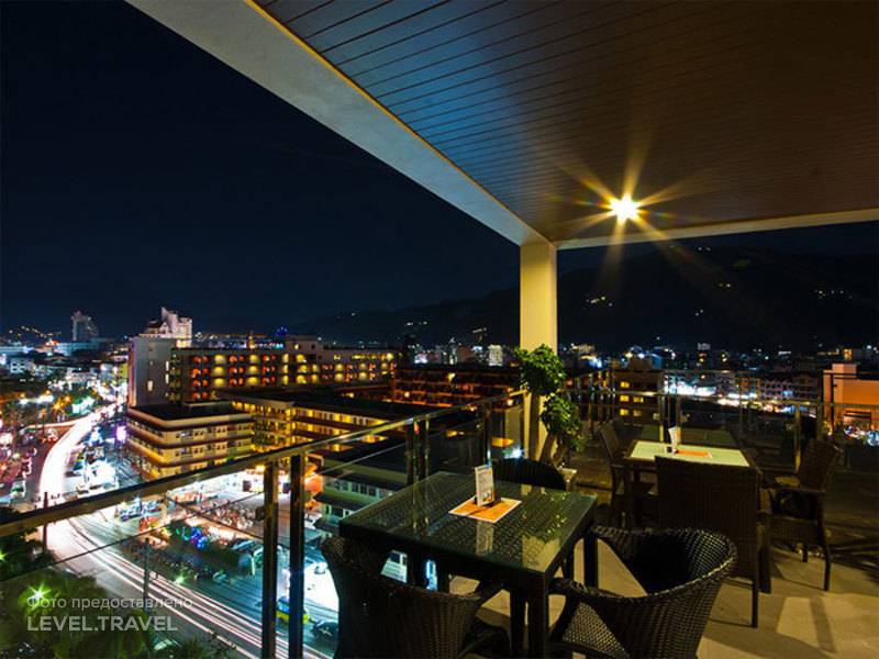 Приехали в отель утром и нам сказаали, что заселение только в 2, так что придется погулять, вещи можно было оставить на ресепшене.Мы переоделись и отправились изучать окрестности. До пляжа Патонг 5-7 минут медленно пешочком. Рядом через дорогу Фемили март и еще метров через 100 Севен, есть аптеки, обменники валют, куча кафешек, прокаты байков. Все в шаговой достпуности. очень удобно.Пришли мы назад немного раньше двух, нас заселили, взяли залог 500 бат (вернули в конце без вопросов).Номер у нас был без балкона (как и пишут, вещи не сохнут абсолютно. купальник мог сохнуть 2-3 дня, но в целом нас это не очень напрягало), большая кровать, стол, стул, тумбочка, минибар, чайник, фен, кондиционер, ванная с душевой кабинкой, довольно уютно. Каждый день в номере убиирали (пол мыли не каждый день), ставили новую водичку, меняли полотенца, постельное белье меняли я думаю раза 3 за все время, все не супер новое, но чистое.На крыше бассейн, шикарный, и вид отличный, бар, места и шезлонгов не очень много, но как-то и народу не замечали мы там много, хотя и бывали не очень часто сами тоже) не в бассейне плавать приехали)Завтраки были довольно однообразны: яичница, рис, иногда курица с овощами, картошка фри/пюре/по-деревенски, сосиски, ветчина, хлеб, джем, масло, хлопья, молоко, соки, фрукты, овощи, чай, кофе. Из мяса только курица и то иногда. Под конец надоели, и ощущения в животах после этой еды не самые приятные, но критичсеких ситуаций не было.В целом отель рекомендую, если вы приехали не сидеть круглыми сутками в номере и бассейне, мы очень довольны им, как местом, чтобы отдохнуть, принять душ и ночевать, в перерывах между тайскими приключениями)))