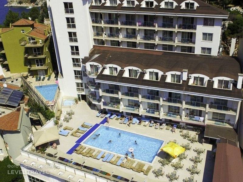 Хороший отель за свои деньги. Чистые светлые и просторные номера. С уборкой и заменой полотенец никаких проблем не было. Персонал доброжелательный, но по русски мало кто разговаривает, в основном на английском. Питание вкусное, но выбор ограничен. Всегда есть 2-3 вида мяса - индейка, курица, Баранина, рыба, много свежей зелени и овощей. Из фруктов арбузы, дыни, яблоки, груши, апельсины. Если вы привыкли к 15 видам майонезных салатов, 5 видам куриц, трём видам рыбы - то здесь такого нет. До моря пешком минут 5-7. У отеля свой пляж, лежаки всегда были. Минус - отель не предоставляет пляжных полотенец, берите свои. Вход в море по понтонному мостику. Пляж галечный. Рядом Есть все что может понадобиться - аптека, тур.агенство, Лавки, кафе, рестораны, остановка автобуса до Мармариса. В 10 метрах от отеля супермаркет Мигрос. Мы там покупали персики, инжир, нектарины, чернику, мороженное - с таким выгодным курсом все выходило очень дёшево. Карту мир принимают практически везде. Немного долларов только обменяли на наличные лиры для того чтобы съездить на автобусе в Мармарис. Автобус стоит 25 лир. Можно так же уплыть на водном такси-кораблике - цена 100 лир. Такси до Мармариса от 250 лир. Сам посёлок Турунч небольшой, очаровательный. Дорога до него из аэропорта занимает примерно 2,5 часа. Про серпантин уже писали - кого укачивает, пейте драмину перед дорогой. В общем, отель подойдёт для спокойного, экономичного отдыха без повышенных ожиданий