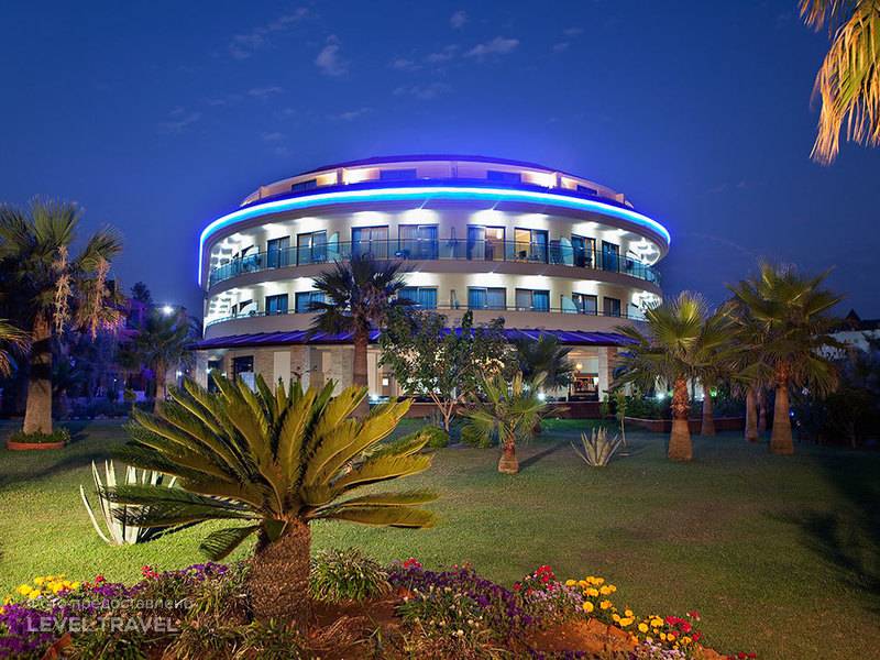 Отель был построен в 1990 году и полностью отреставрирован в 2013 году. Его сертификат BLUE FLAG говорит о том, что здесь соблюдаются высокие стандарты экологии и безопасности. Отель расположен в 110 км от аэропорта г. Анталья, в 12 км от г. Аланья и в 500 м от поселка Конаклы, на берегу моря. В нем есть два главных 7-этажных корпуса, соединенных между собой, и пять 3-этажных корпусов Villa. Общая площадь составляет 55 000 м2, а номеров – 611.